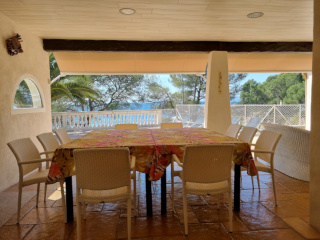 La terrasse permet d'accéder directement à la cuisine et est entièrement couverte.